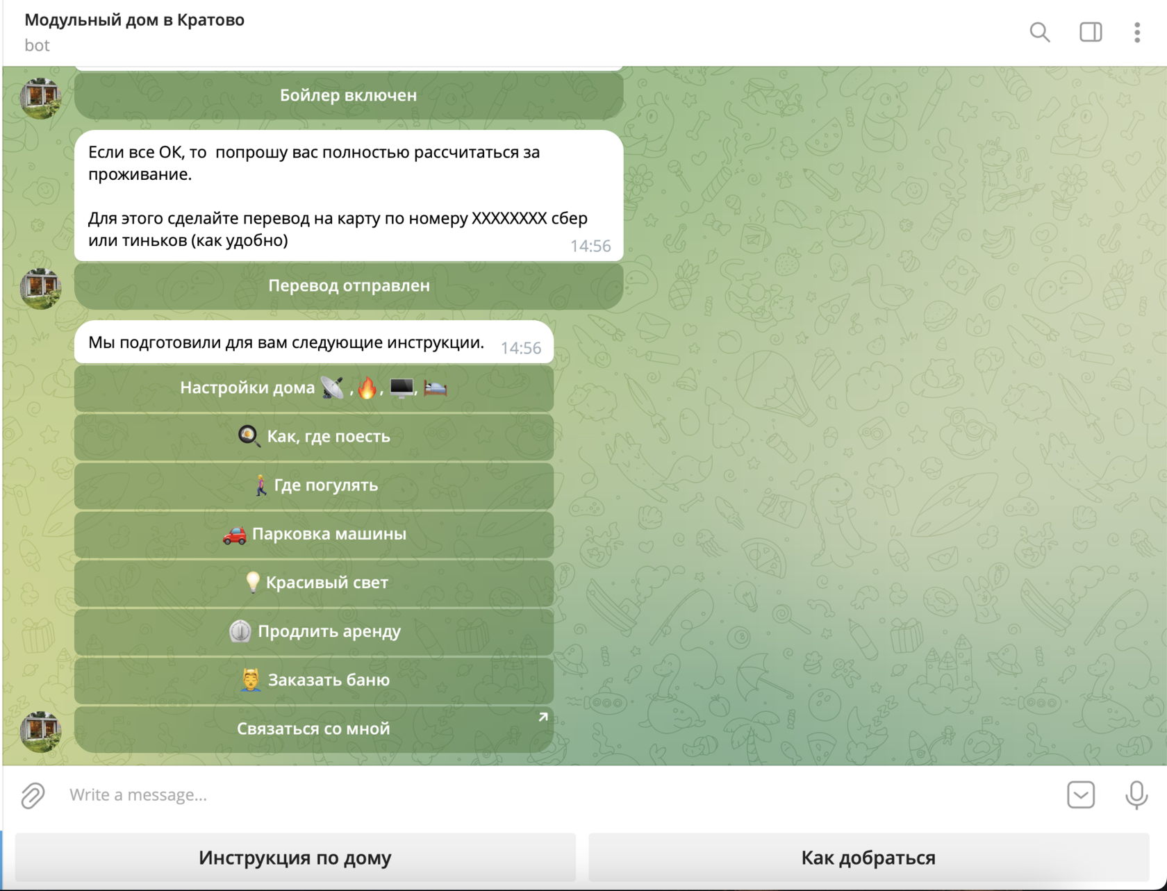 Для этой функции мы приготовили бота, который сам разместит ваш дом, и поможет гостям заехать.